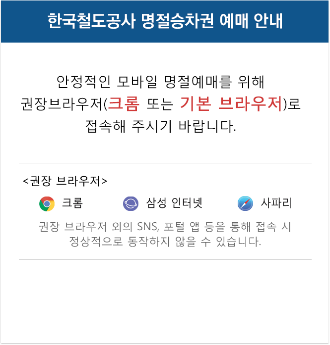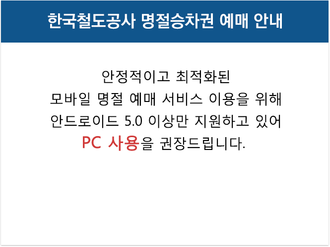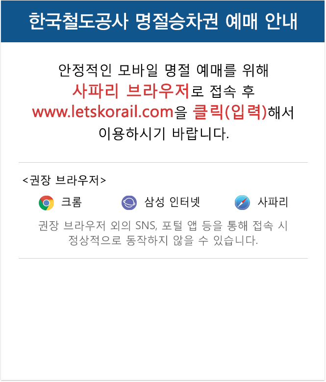 무궁화호 이상(관광전용열차포함) 모든 열차승차권